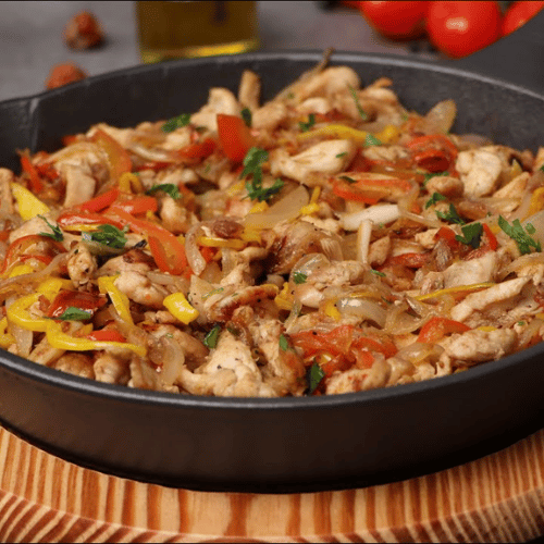 نحضّر هذا الطبق باستخدام قطع دجاج طازجة يتم تتبيلها بخليط خاص من التوابل الشرقية التي تمنحها نكهة عميقة ومتوازنة، ثم تُطهى على الصاج مع شرائح البصل والفلفل الطازج، لتتمازج المكونات معًا وتُطلق روائح شهية تفتح الشهية