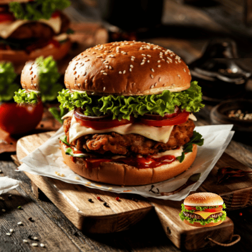 نحضّر البرجر باستخدام أجود أنواع اللحوم الطازجة أو صدور الدجاج المختارة بعناية، حيث يتم تتبيلها بخلطات خاصة تمنحها طعمًا مميزًا وفريدًا. تُشوى قطع البرجر أو تُطهى بإتقان لتحافظ على عصارتها من الداخل، مع قشرة خارجية شهية تضيف