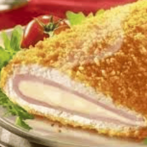 نحضّر هذا الطبق باستخدام صدور دجاج طازجة يتم تتبيلها بعناية، ثم تُحشى بطبقة غنية من الجبن الذائب وشرائح لحم مدخن، لتمنحك توازنًا رائعًا بين النكهات. بعد ذلك، تُغطّى بطبقة مقرمشة وتُقلى بإتقان حتى تحصل على لون ذهبي جذاب وقوام مثالي يجمع بين القرمشة من الخارج والطراوة من الداخل.