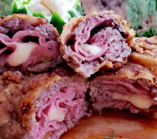 نحضّر هذا الطبق باستخدام شرائح لحم طازجة عالية الجودة، يتم تتبيلها بعناية لإبراز نكهتها الطبيعية، ثم تُحشى بطبقة غنية من الجبن الذائب ومكونات مختارة تضيف عمقًا للطعم وتوازنًا مثالياً بين الملوحة والنعومة.